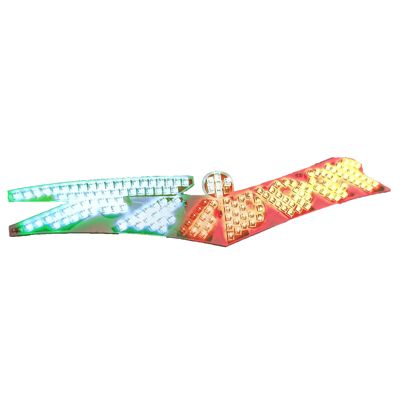Die Pixel LEDs werden dadurch direkt sichtbar und leuchten in unterschiedlichen Lichtmustern und Effekten.