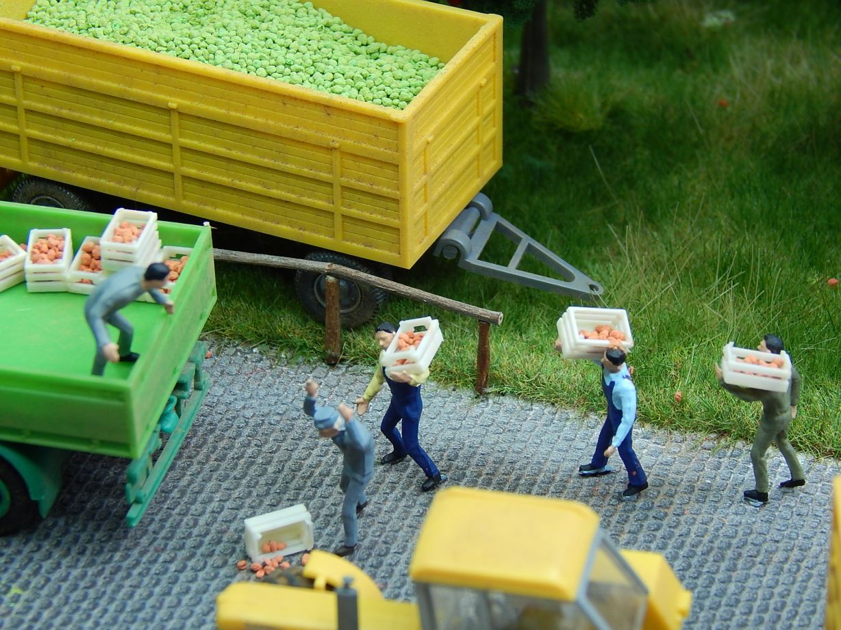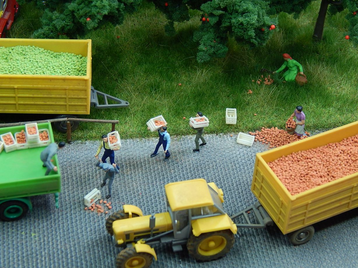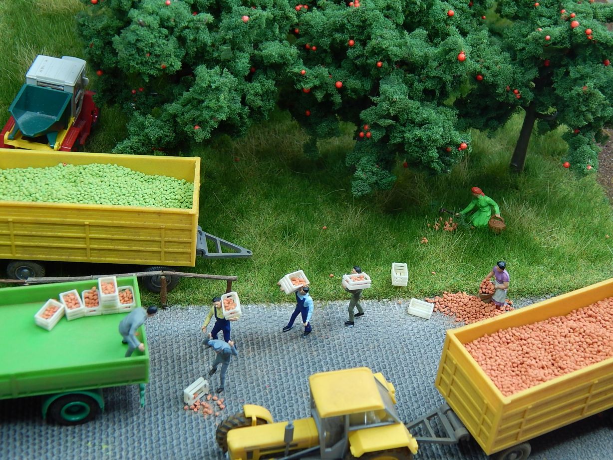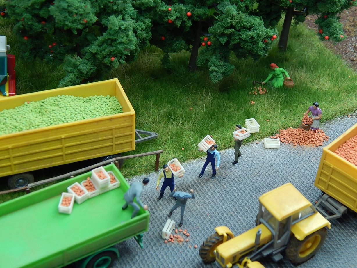 Hmm, Äpfel sind auch lecker - und viele davon kommen auf einen Wagen: z.B. auf den Erntewagen, denn Äpfel wurden auch mit der Eisenbahn transportiert. Natürlich kullern sie auch gerne über das Diorama.