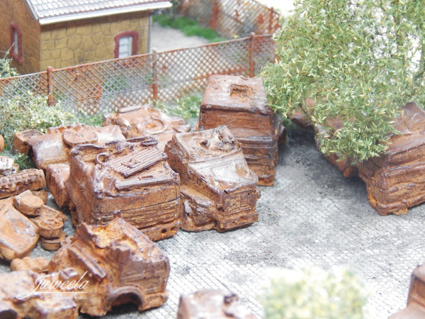 Ausgediente oder "vergessene" LKW gibt es auch auf dem Diorama im Modellbau: Auf dem Schrottplatz, halb zugewachsen unter hohen Bäumen...