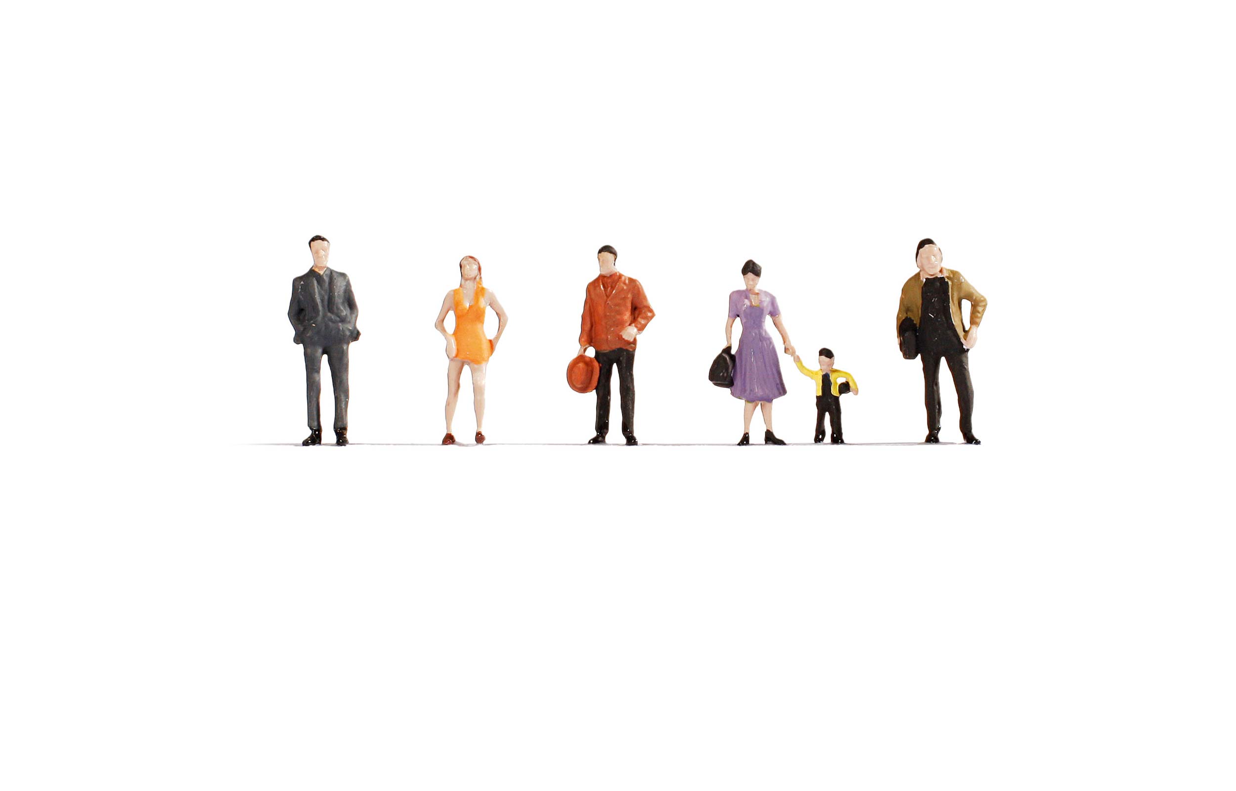 Passanten für die Spur H0, die gerade an einem Bahnhof stehen und um jemanden von ihren Liebsten abzuholen oder zu verabschieden.