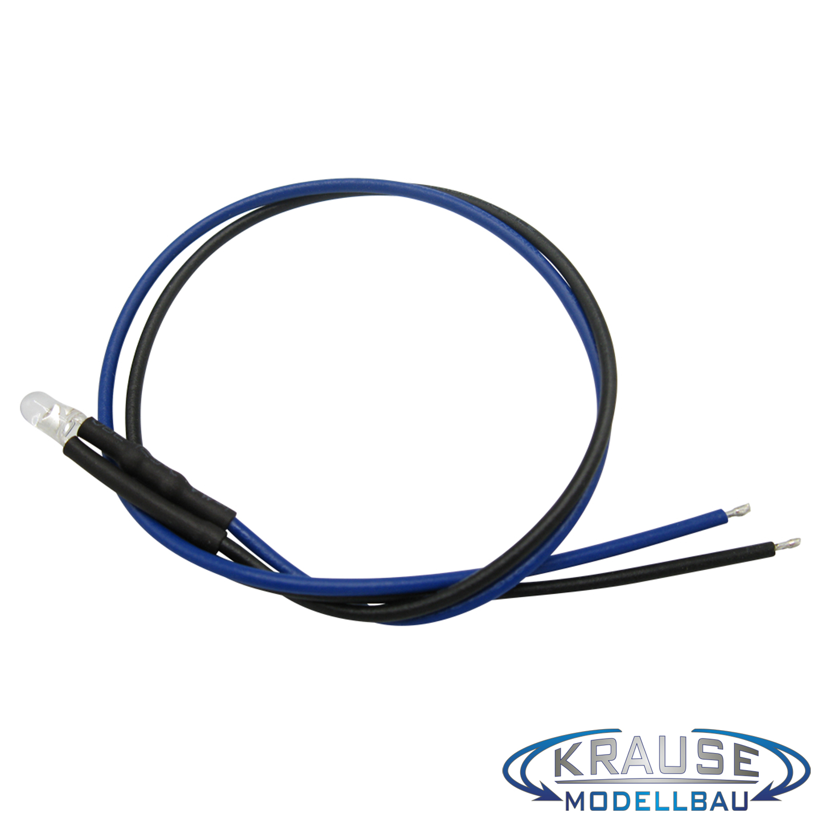 5 Stück Anschlussfertige 3mm LED in der Leuchtfarbe blau. Von 12V bis 24V universell einsetzbar.