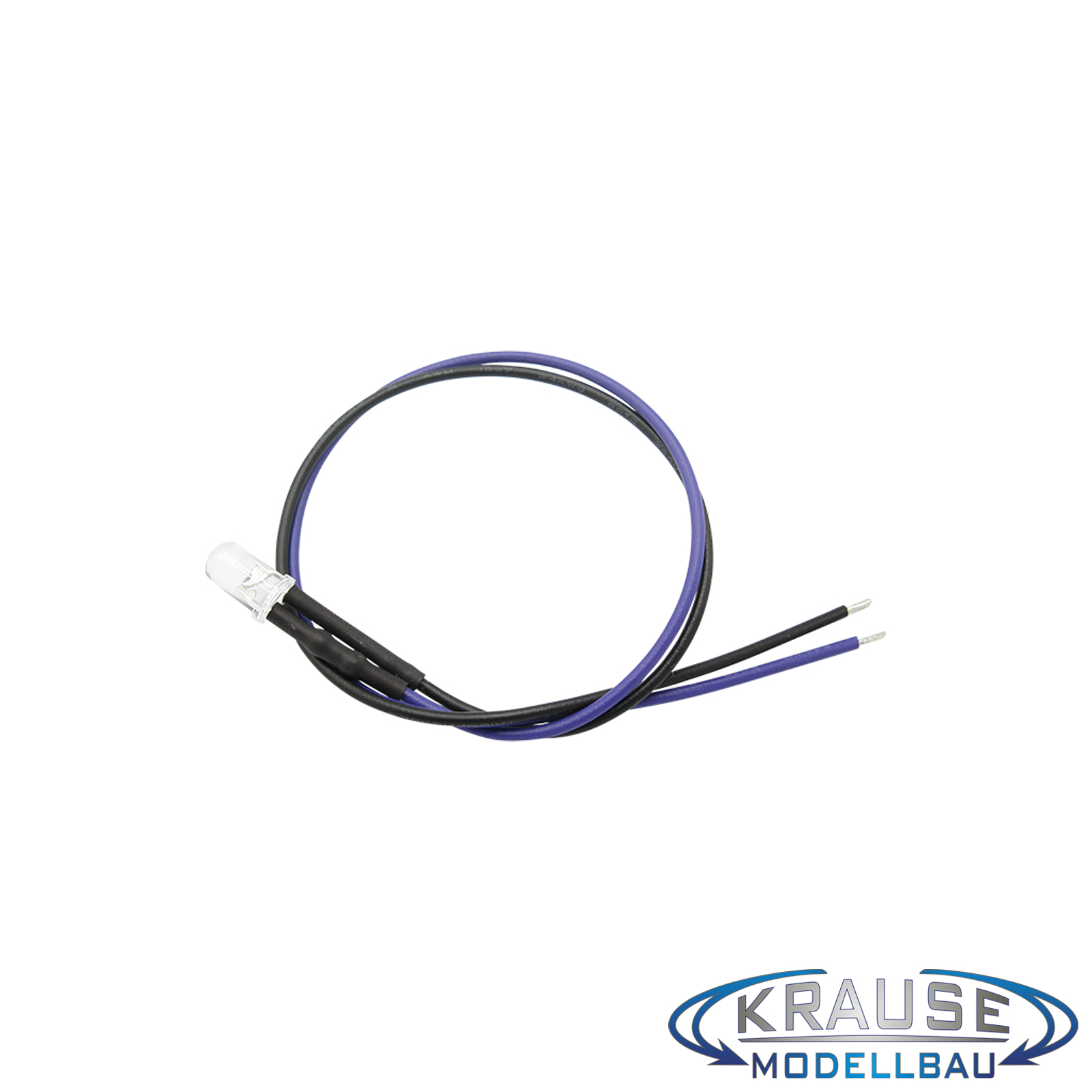 5 Stück Anschlussfertige 5mm LED in der Leuchtfarbe violett UV. Von 12V bis 24V universell einsetzbar.