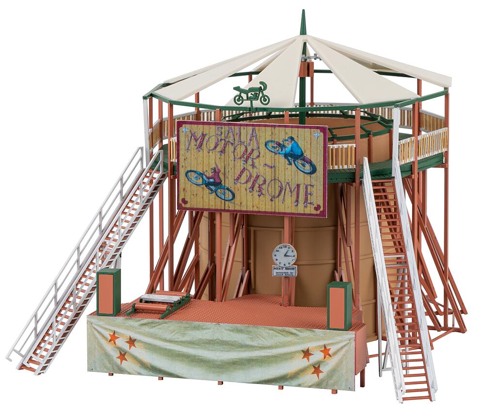 Kirmes-Nostalgie! Funktionsmodell einer Motorrad-Steilwandshow mit zwei fahrenden Motorrädern nach dem Vorbild des 1937 in Sala,