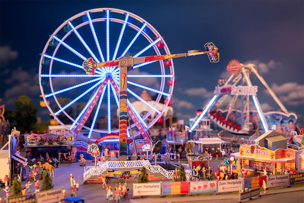 Das dem Original in Bewegung und künstlerischer Gestaltung sehr nahekommende FALLER Modell »No Limit« stammt im Original von dem niederländischen Schausteller Van Reken.