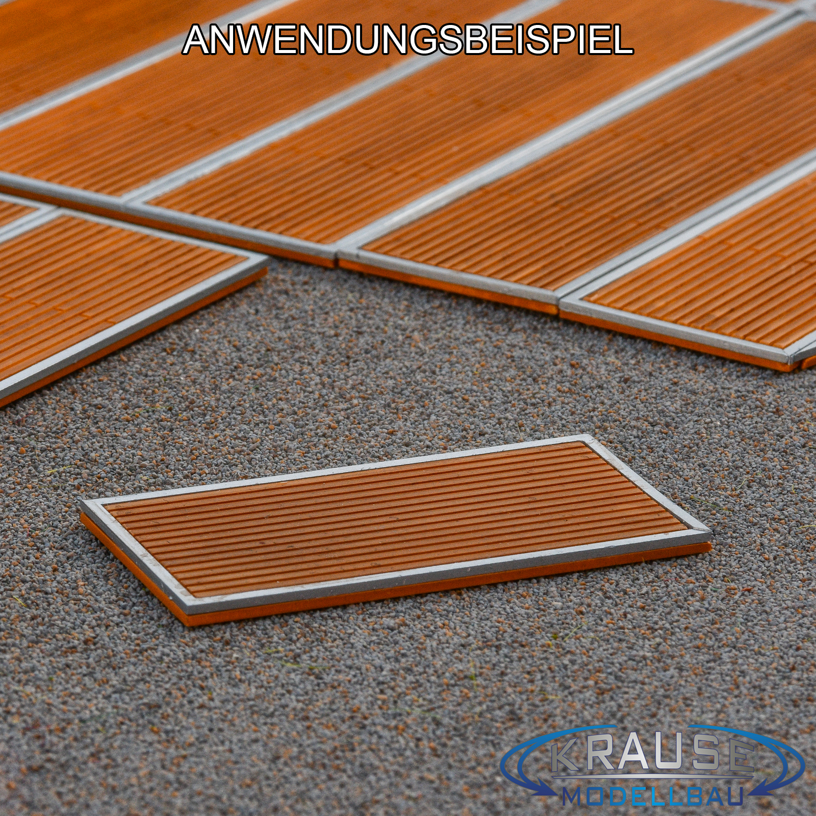 Mit Holzbrettoptik durch fein gravierte Nuten.