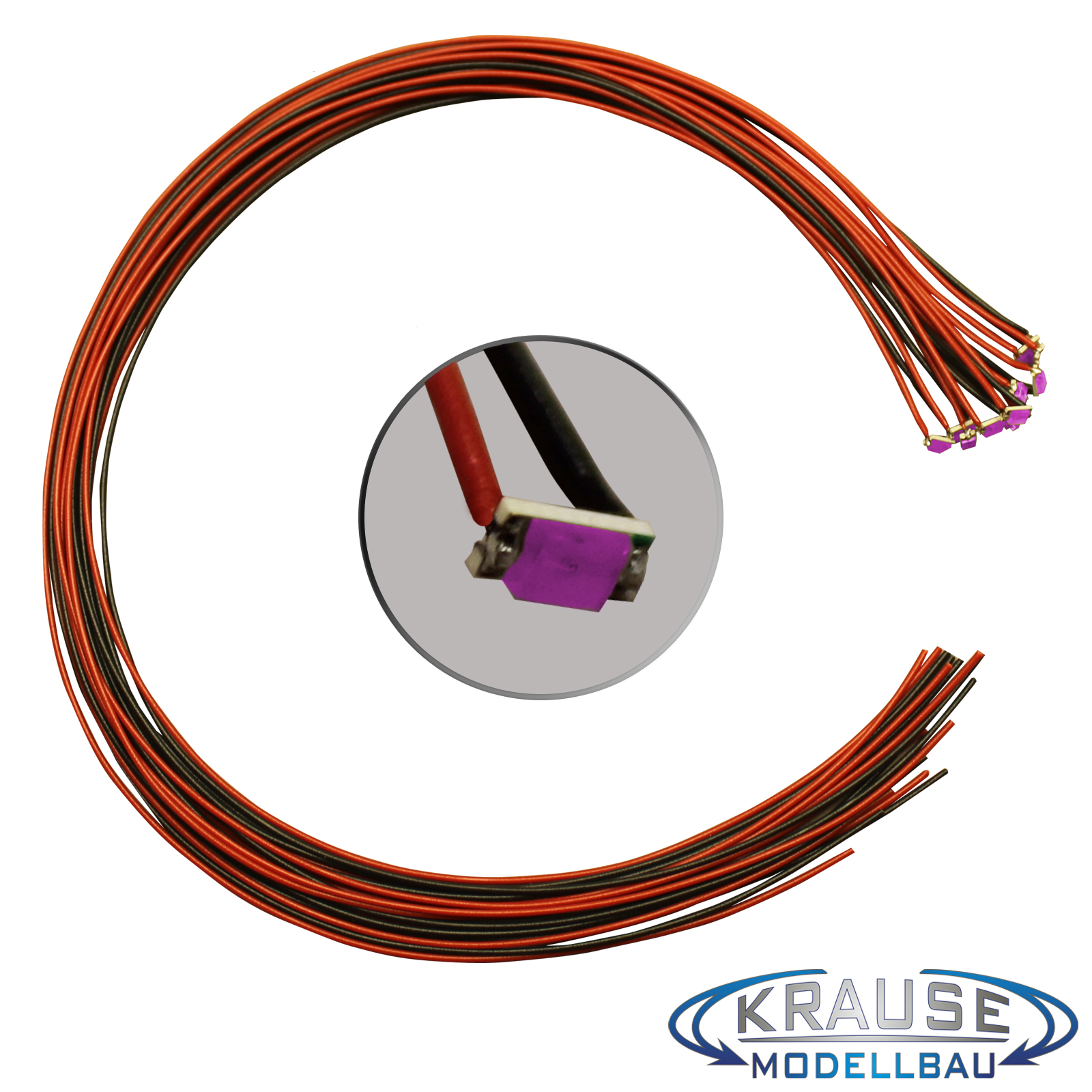 Mit bereits angelöteten Anschlussdrähten flexible Litze 0,05 mm² zur einfachen Verarbeitung.